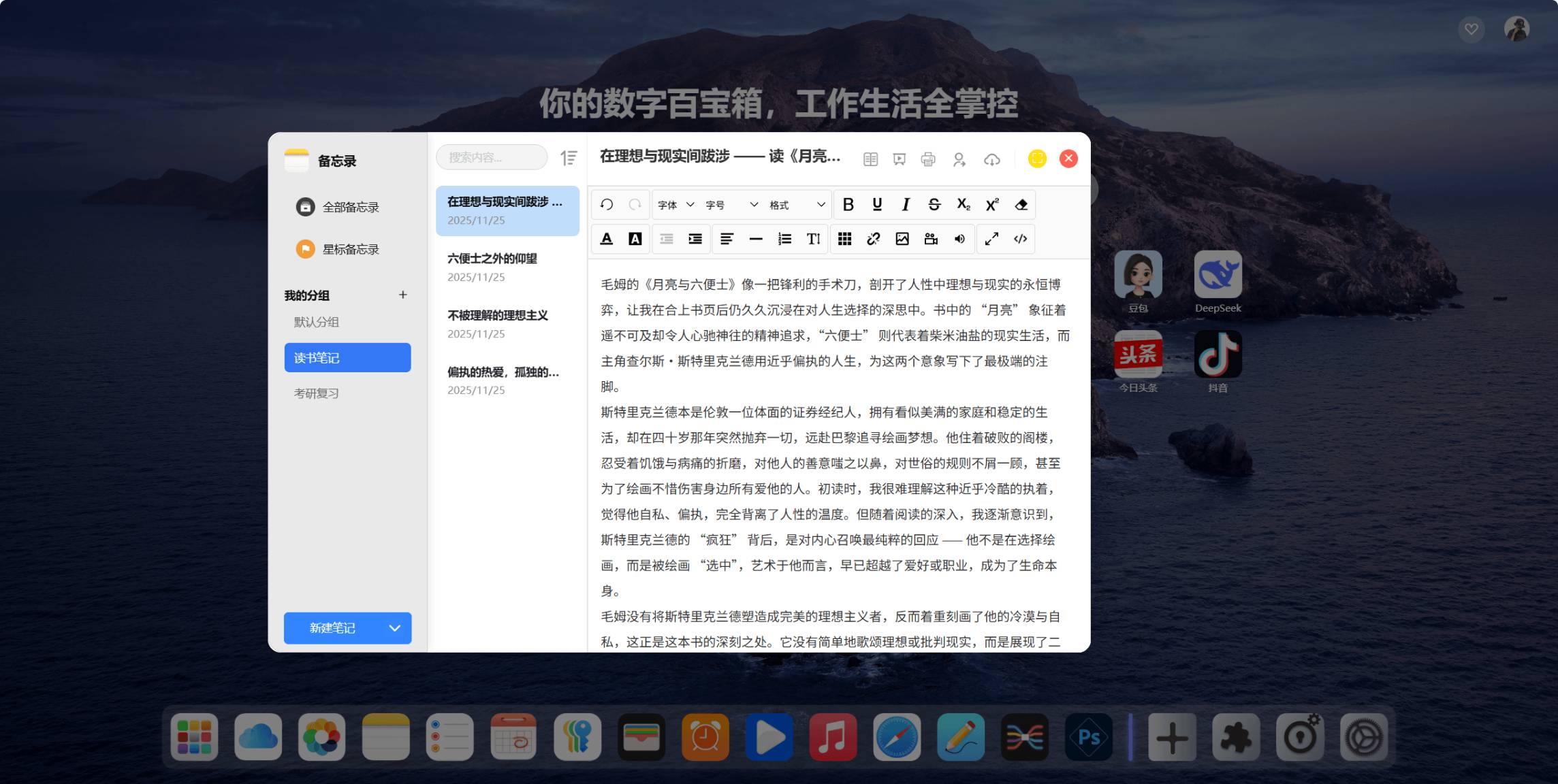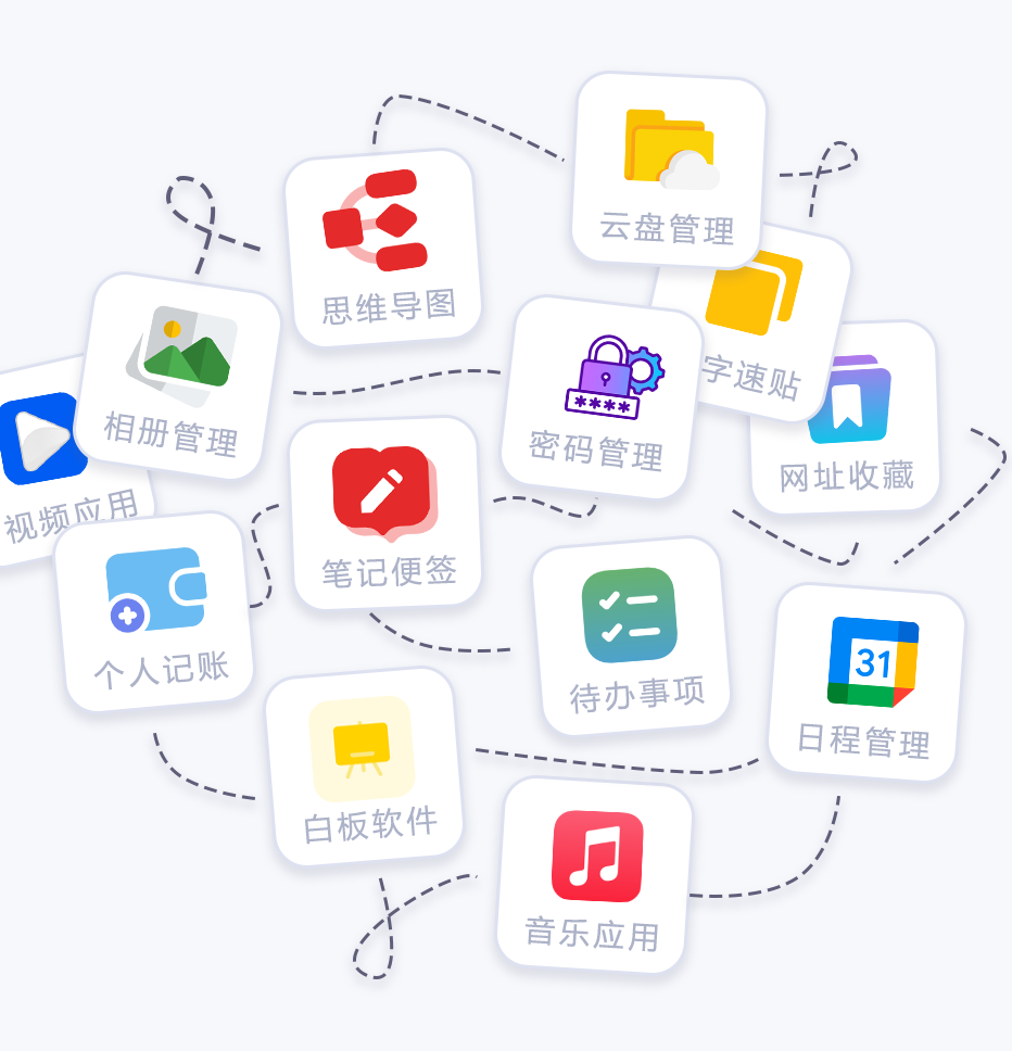 CodaYun 集成笔记、待办、网盘、日程、密码与相册等工具,把所有琐碎功能集中在一个地方,让你随时捕捉灵感,高效安排事务,稳步达成目标,彻底告别混乱。