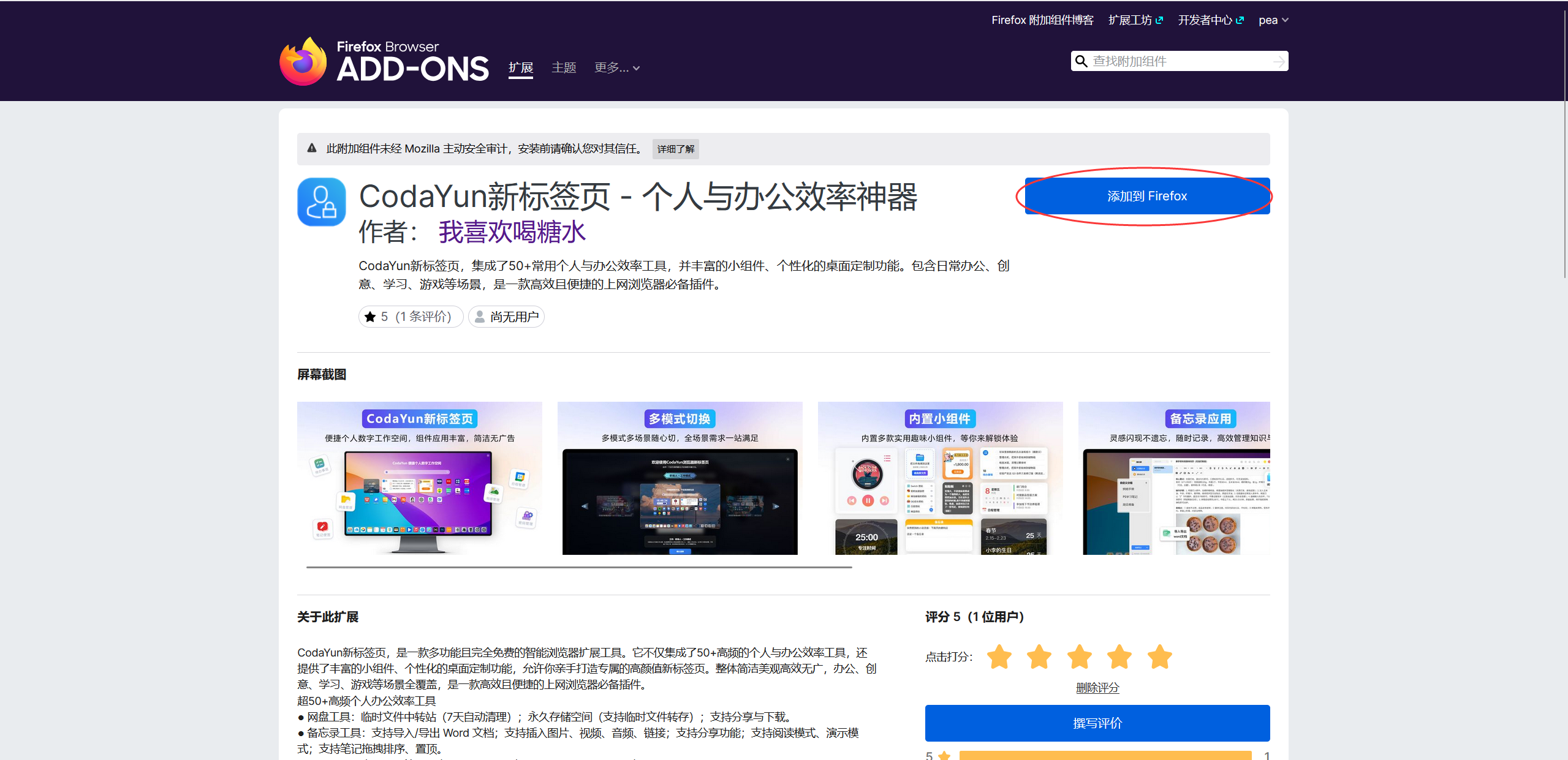2、点击弹出层当中的 添加拓展 按钮,然后等待安装完成